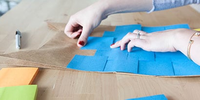 3. Start layering Post-it® Notes to cover your piñata. Don't worry if they don't line up perfectly—the end result will be great! Use whatever colors or patterns you want.